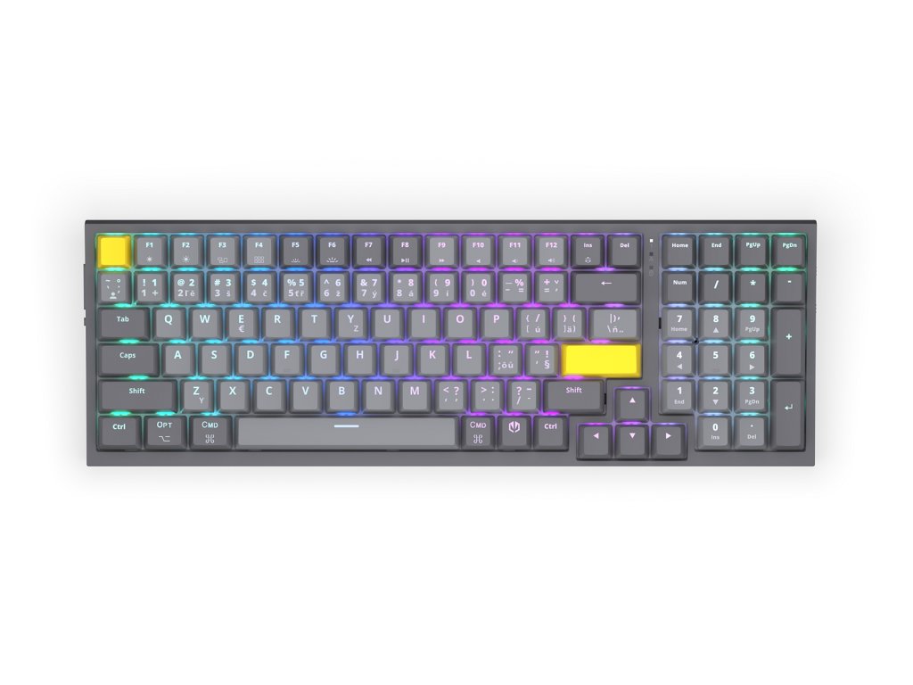 Endorfy Thock V2 75% Wireless Klávesnice,herní,bezdrátová,mechanická,Endorfy Yellow,US lay.,75%vel.,ARGB,hliník.,BT,2,4GHz,USB,šed