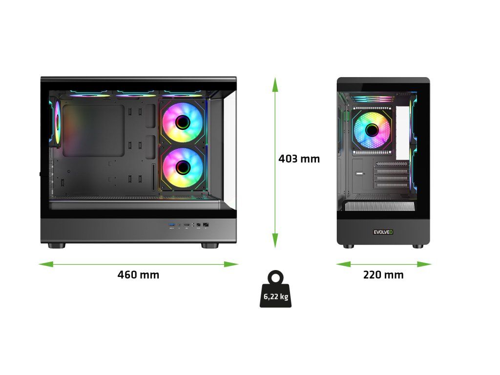 EVOLVEO Ursus, mATX/6x ARGB 120/sklo čelo + bok