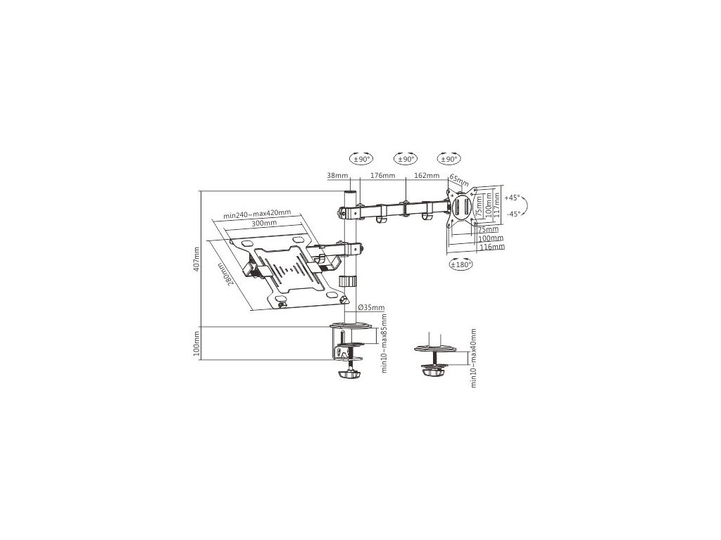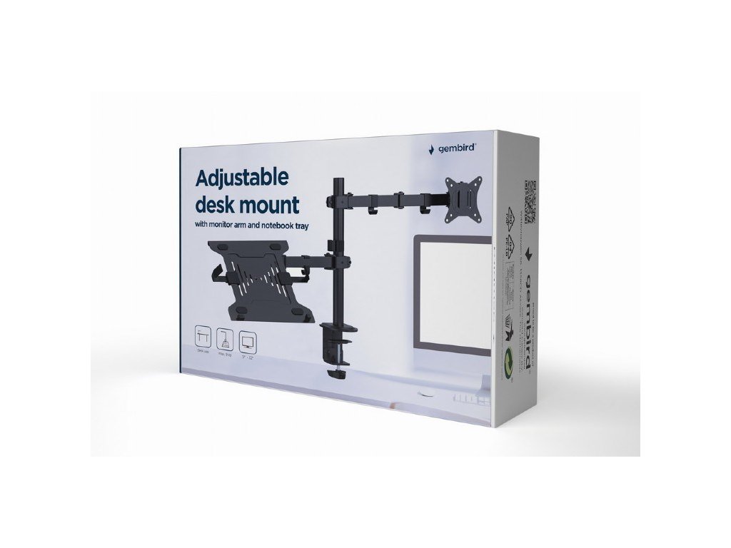 GEMBIRD Držák monitoru na stůl s podstavcem pro notebook MA-DA-03, naklápěcí, až do 32” a 9kg, černý