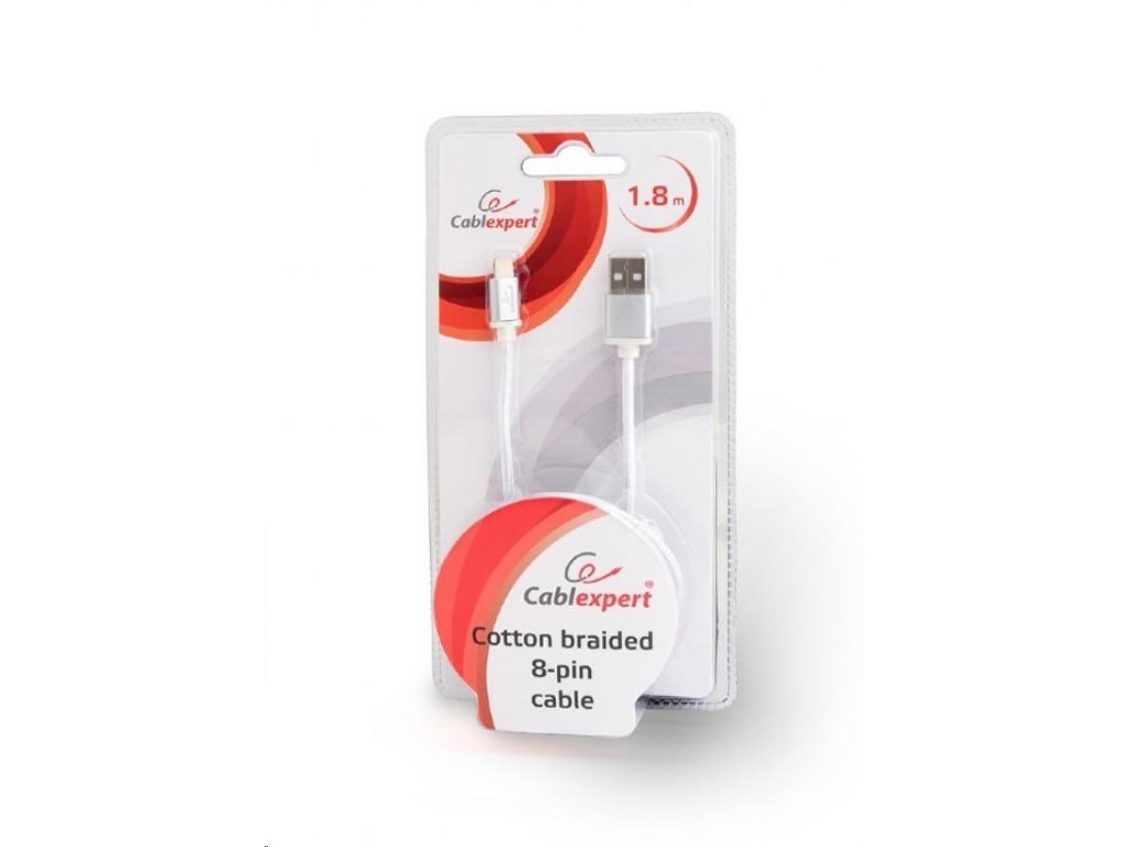 GEMBIRD Kabel USB 2.0 Lightning (IP5 a vyšší) nabíjecí a synchronizační kabel, opletený, 1,8m, stříbrný, blis