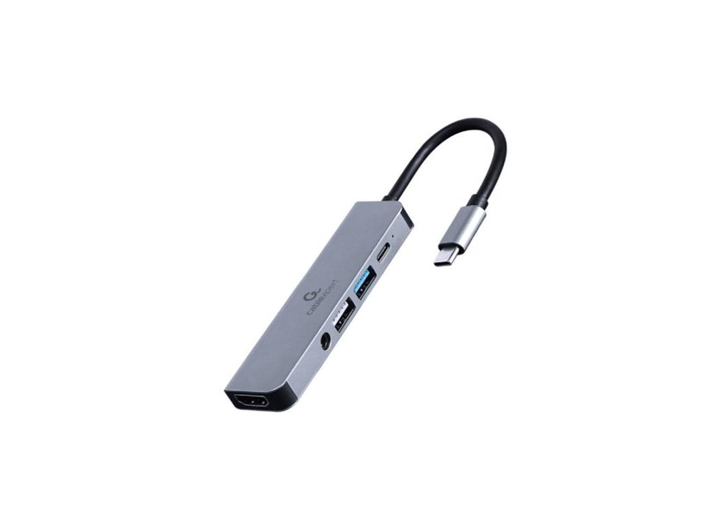 Gembird USB typu-C 5-in-1 multisortový adaptér (HUB + HDMI + PD + stereo audio)