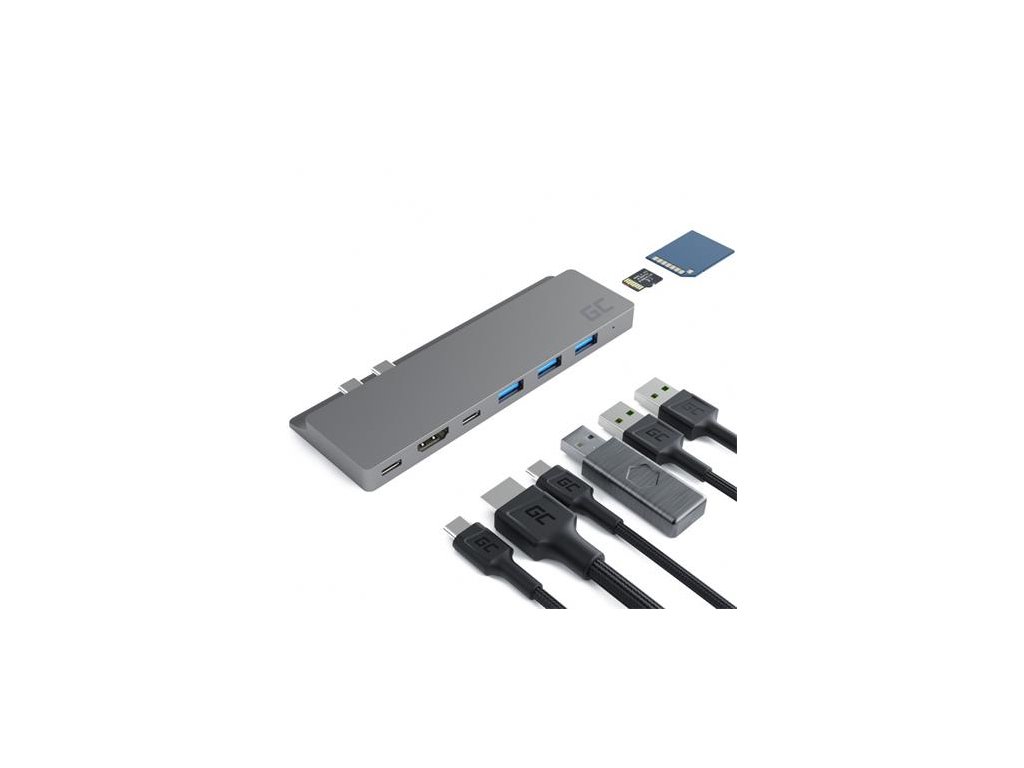 Green Cell HUB Connect60 8in1 adaptér (Thunderbolt 3, USB-C, HDMI, 3x USB 3.0, SD, microSD) pro MacBook Pro 13"/15" 2016 - 2019