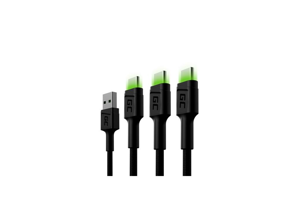 Green Cell Set 3x Cable GC Ray USB-C 120cm Cable with green LED backlight, fast charging Ultra Charge, QC 3.0