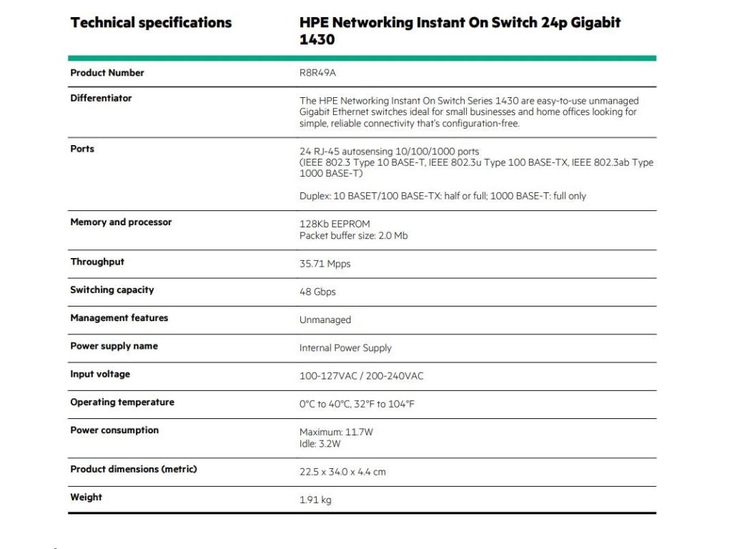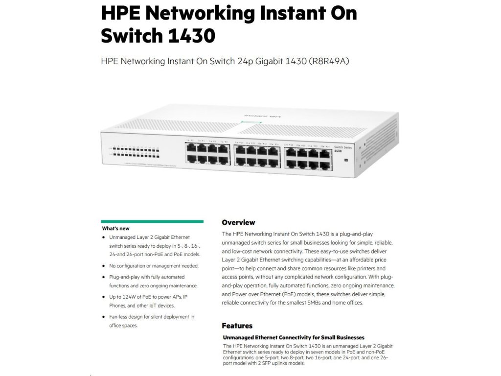 HPE Networking Instant On Switch 24p Gigabit 1430 R8R49A