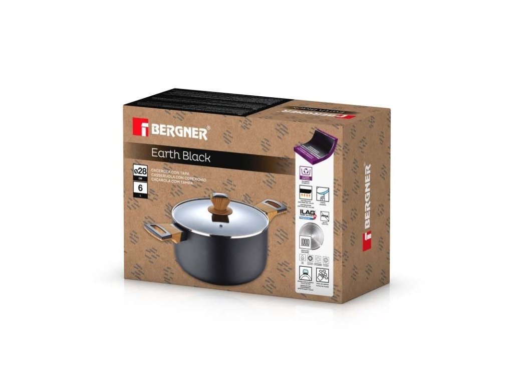 Hrnec BERGNER s nepřilnavým povrchem a poklicí 28 cm Earth Black