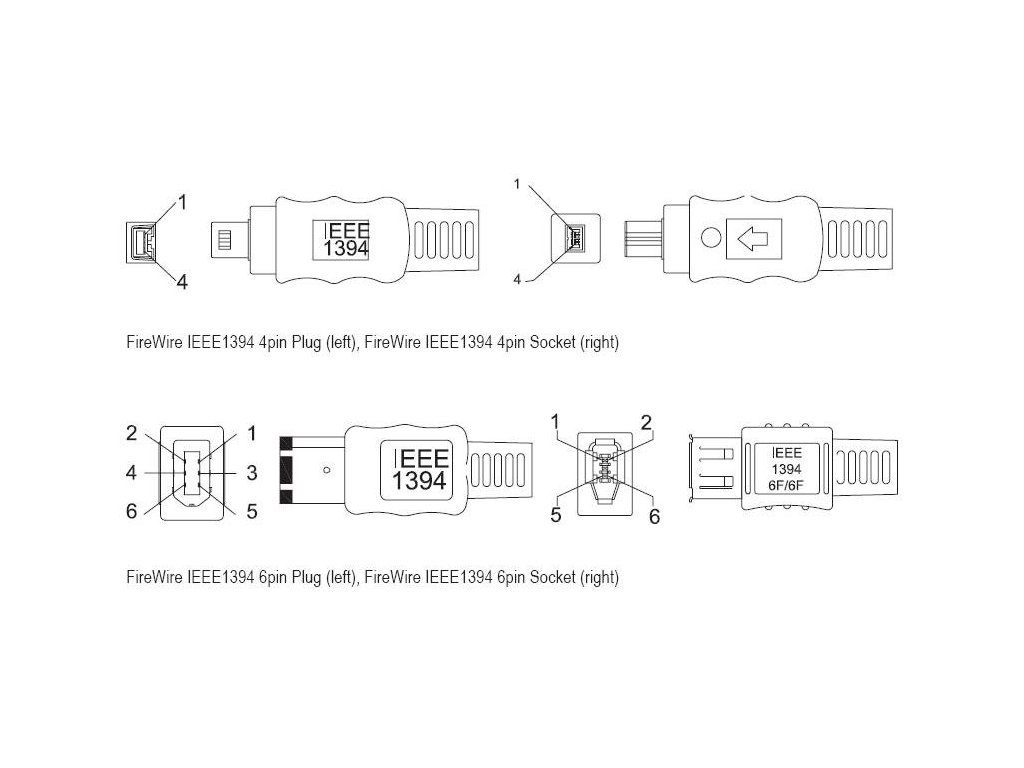 Kabel PremiumCord Firewire 1394 6pin-4pin M/M 2m, černý