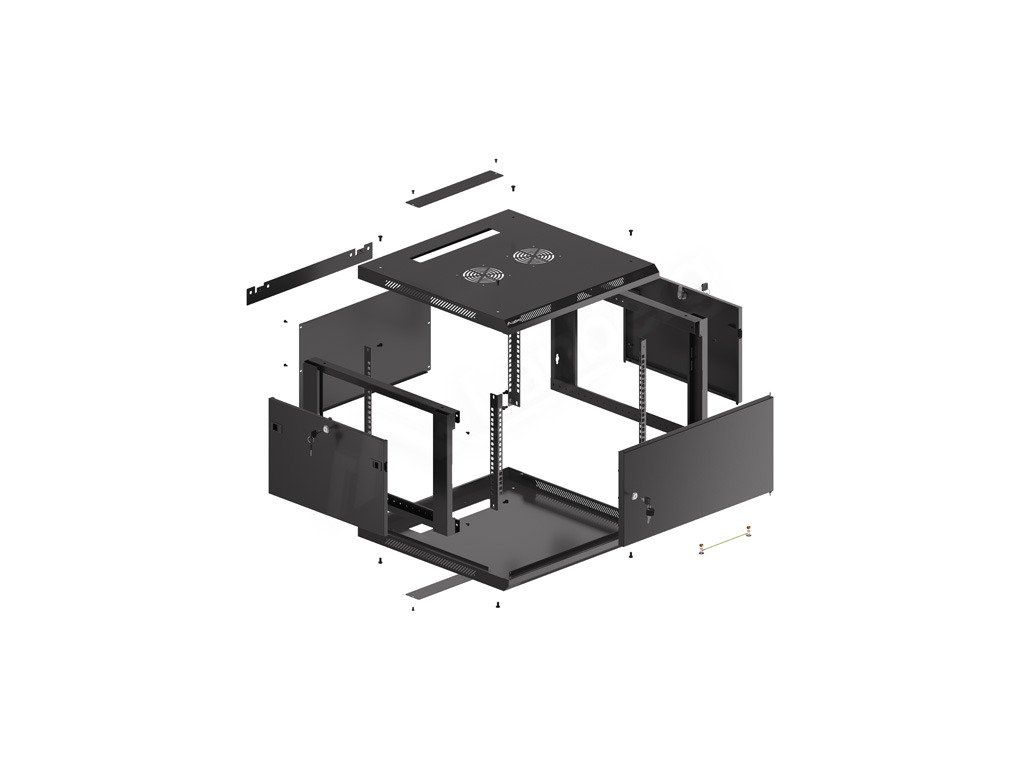 LANBERG 19'' RACKOVÁ SKŘÍŇ PRO MONTÁŽ NA STĚNU 9U/600X450 PRO VLASTNÍ MONTÁŽ S KOVOVÝMI DVEŘMI ČERNÁ