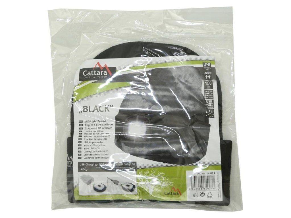 LED čelovka Cattara čepice BLACK s LED svítilnou USB nabíjení