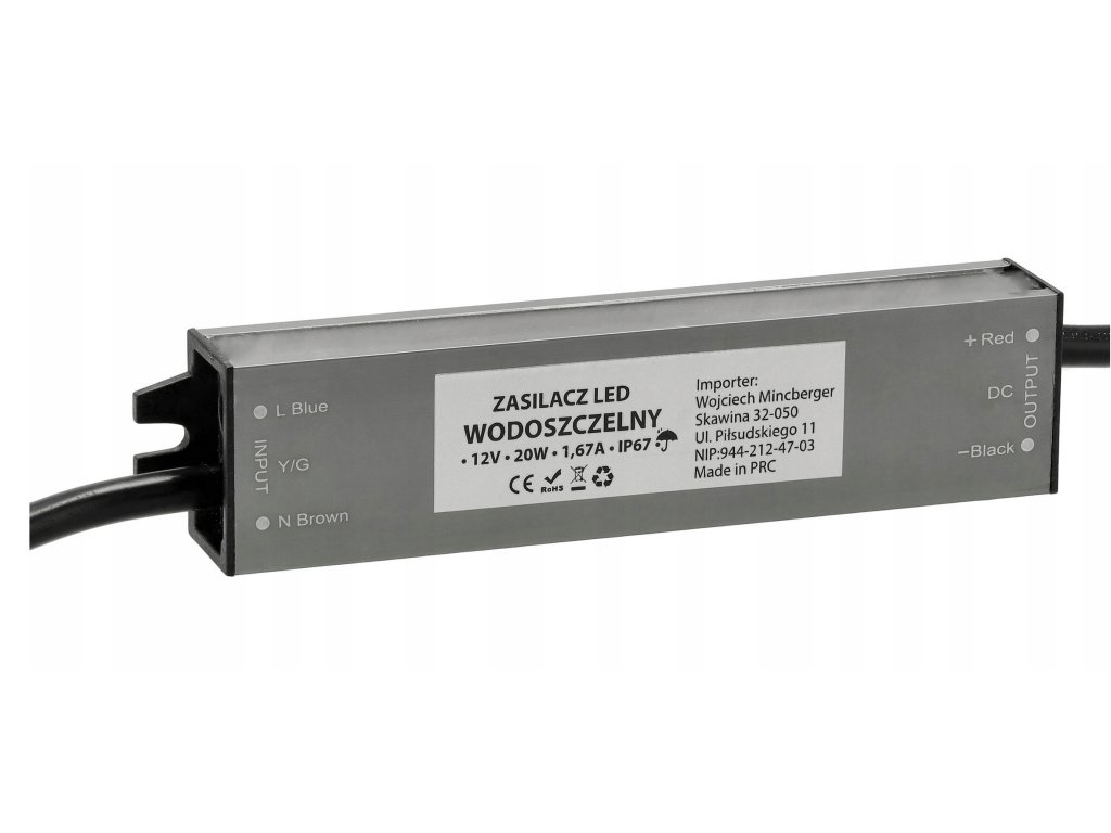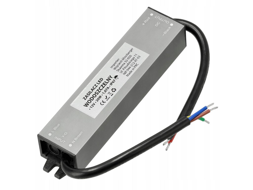 LED hermetický zdroj - 12V - 20W - 1,67A - IP67