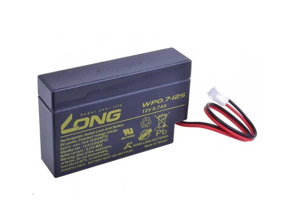 Long 12V 0,7Ah olověný akumulátor JST