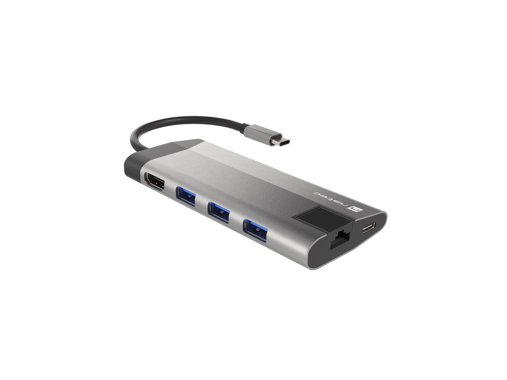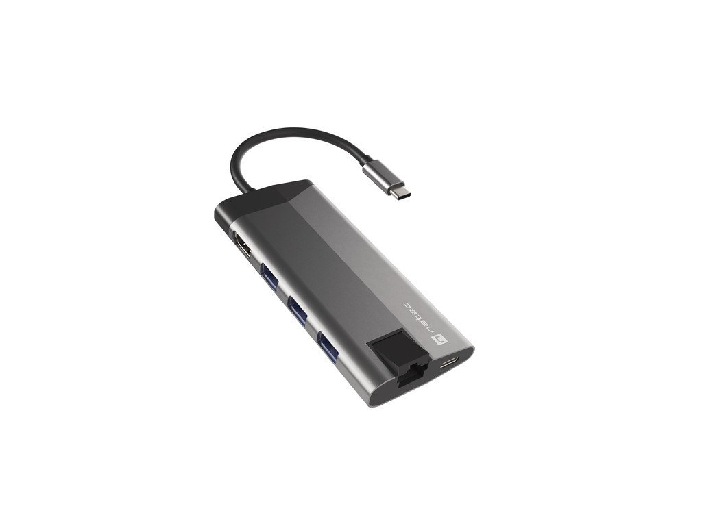 Natec multiport adaptér FOWLER PLUS HUB 8v1, USB 3.0 3X, HDMI 4K, USB-C PD, RJ45, SD, MICRO