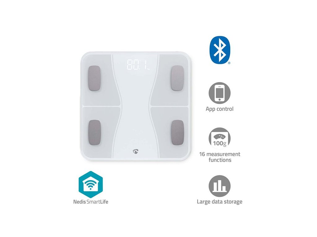 Nedis BTHPS11WT - SmartLife Osobní Váha | BMI / BMR / Hmotnost / Kosti / Svaly / Tuk / Voda | 180 kg | Android & iOS |