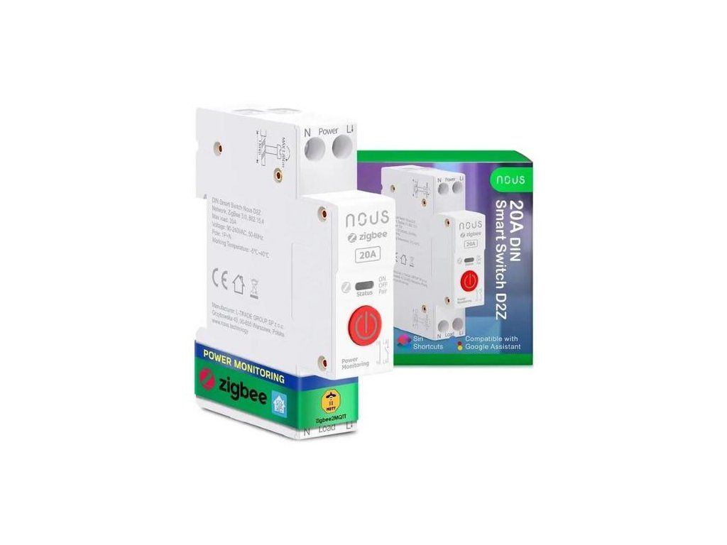 NOUS D2Z DIN smart integrovaný spínač, WiFi switch 20A, kompatibilní s ZigBee a Tuya