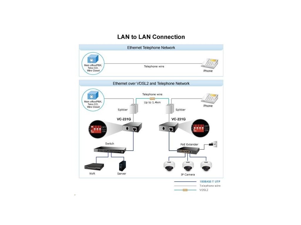 Planet VC-231G, Eth. VDSL2 konvertor, 1000Base-T, master/slave, profil 30a, G.993.5 Vectoring, G.INP, RJ-11