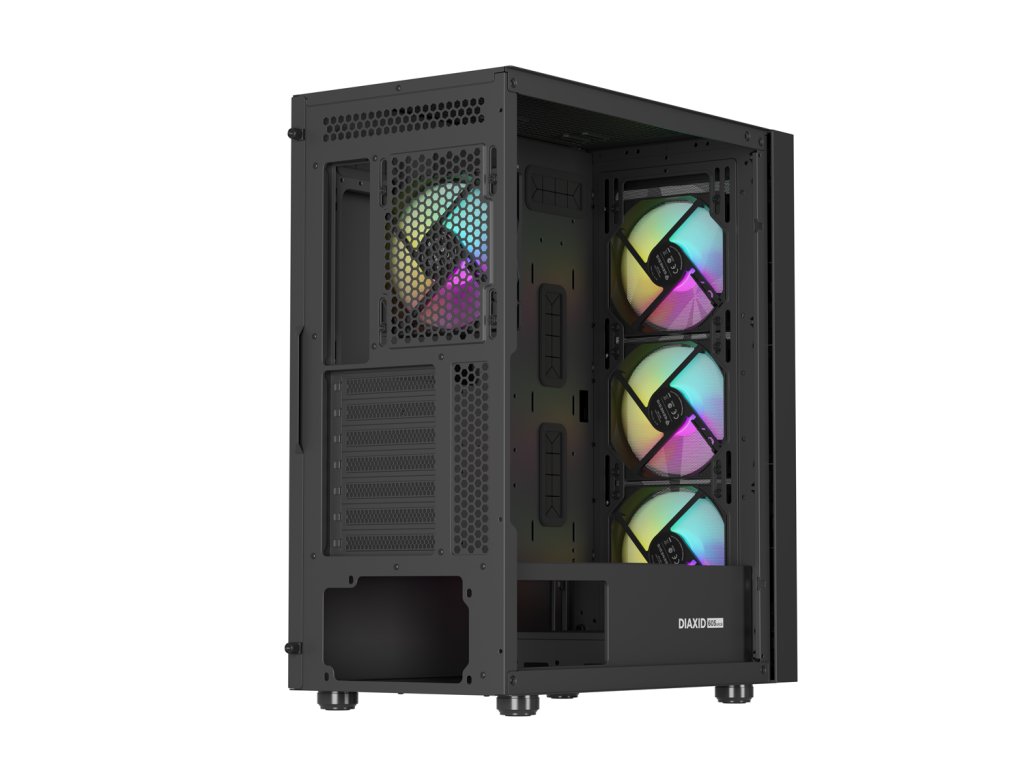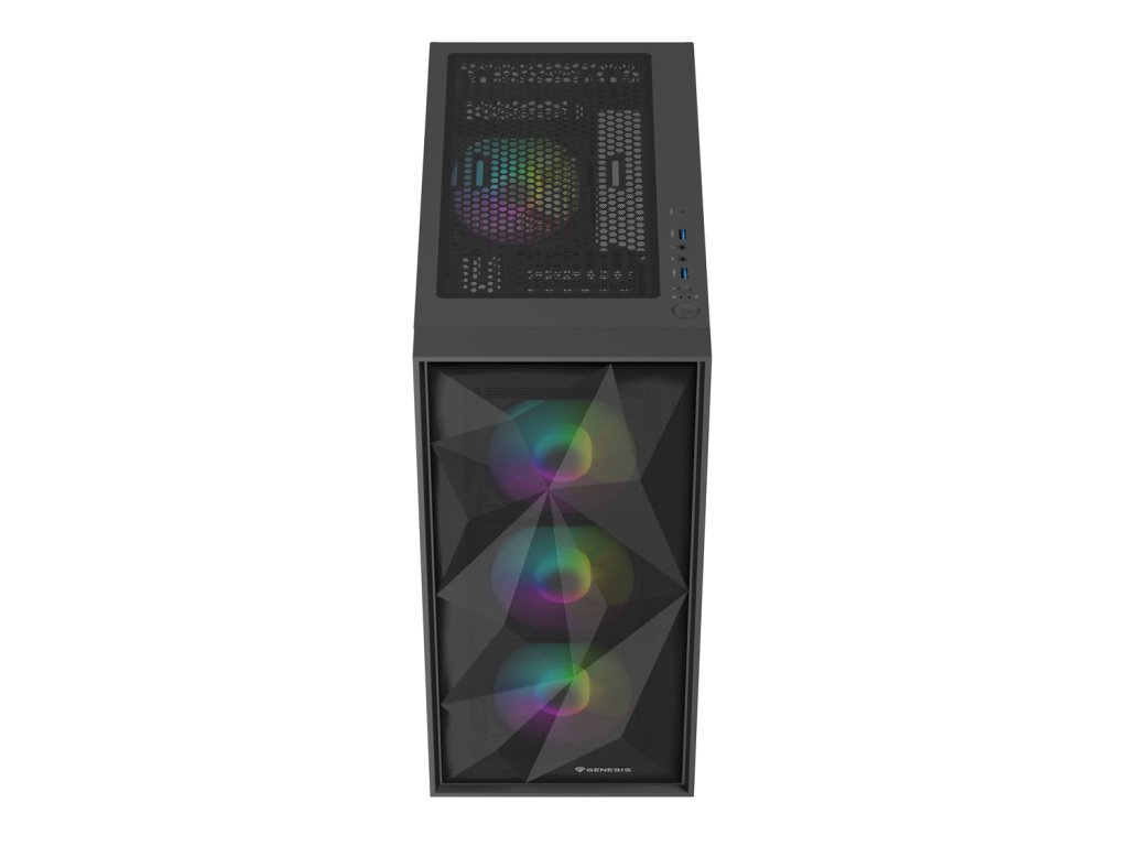 Počítačová skříň Genesis DIAXID 605 ARGB. MIDI. USB-C. černá/Midi Tower/Transpar./Černá