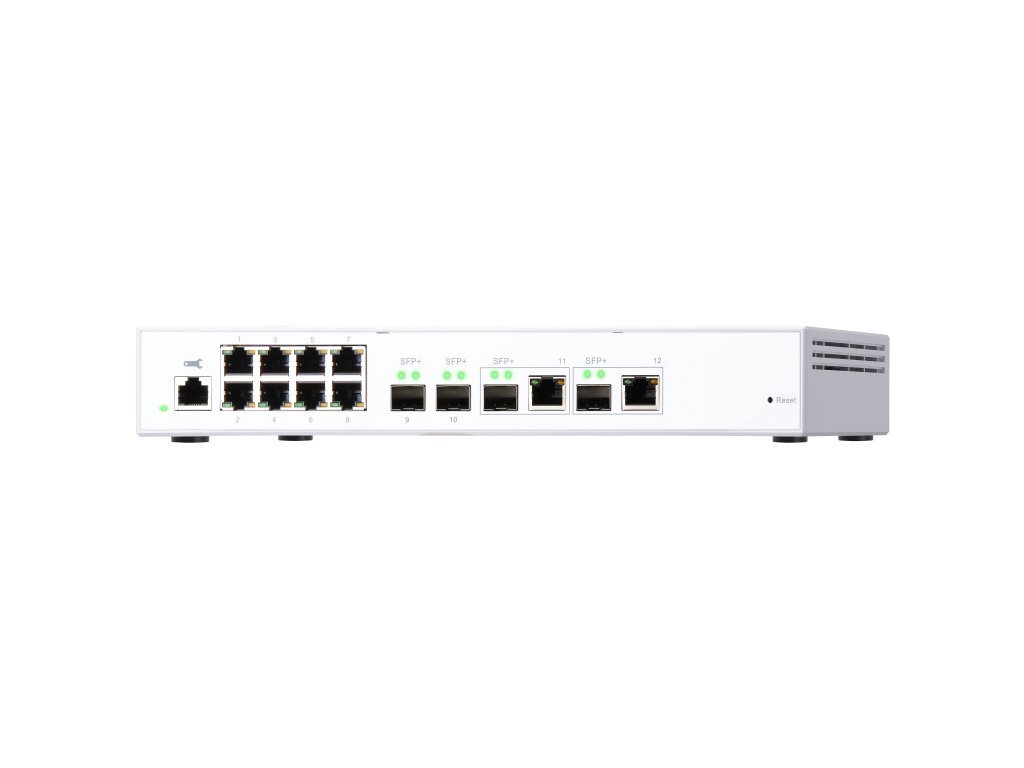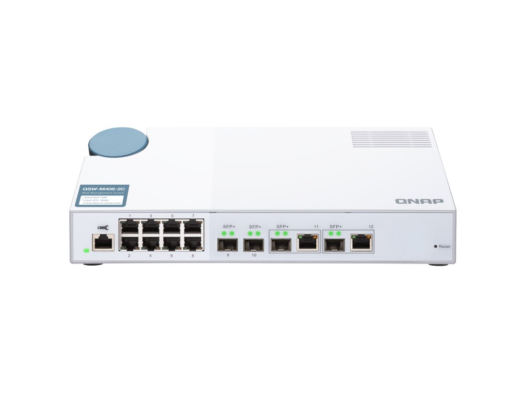 QNAP řízený switch QSW-M408-2C (12portů: 8x Gigabit port + 4x 10G SFP+ /2x 10GbE kombo porty)