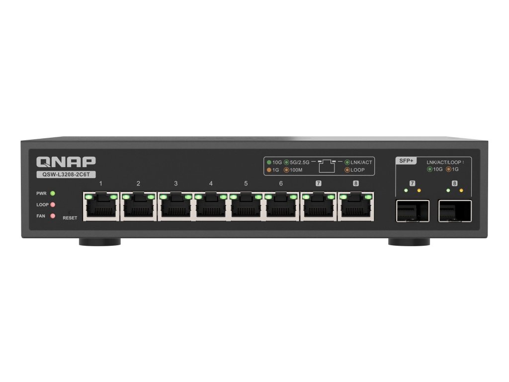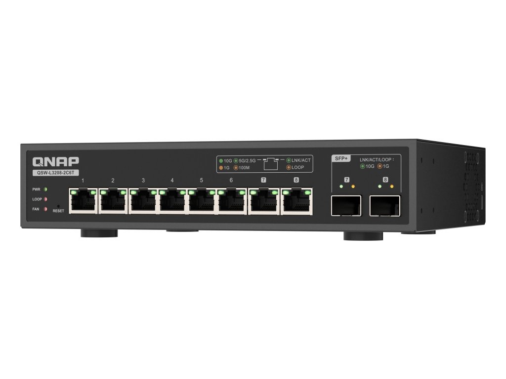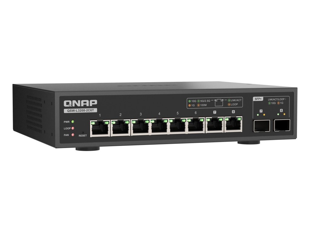 QNAP switch QSW-L3208-2C6T (6x 10GbE port, 2x 10G SFP+/NBASE-T Combo, Lite Managed)