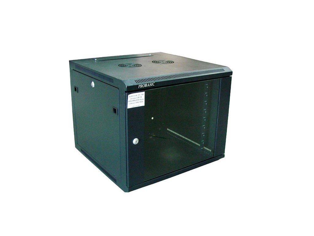 RACK 19" nástěnný ZETA 9U 600x600 RAL9004, dveře sklo k samosestavení, černý
