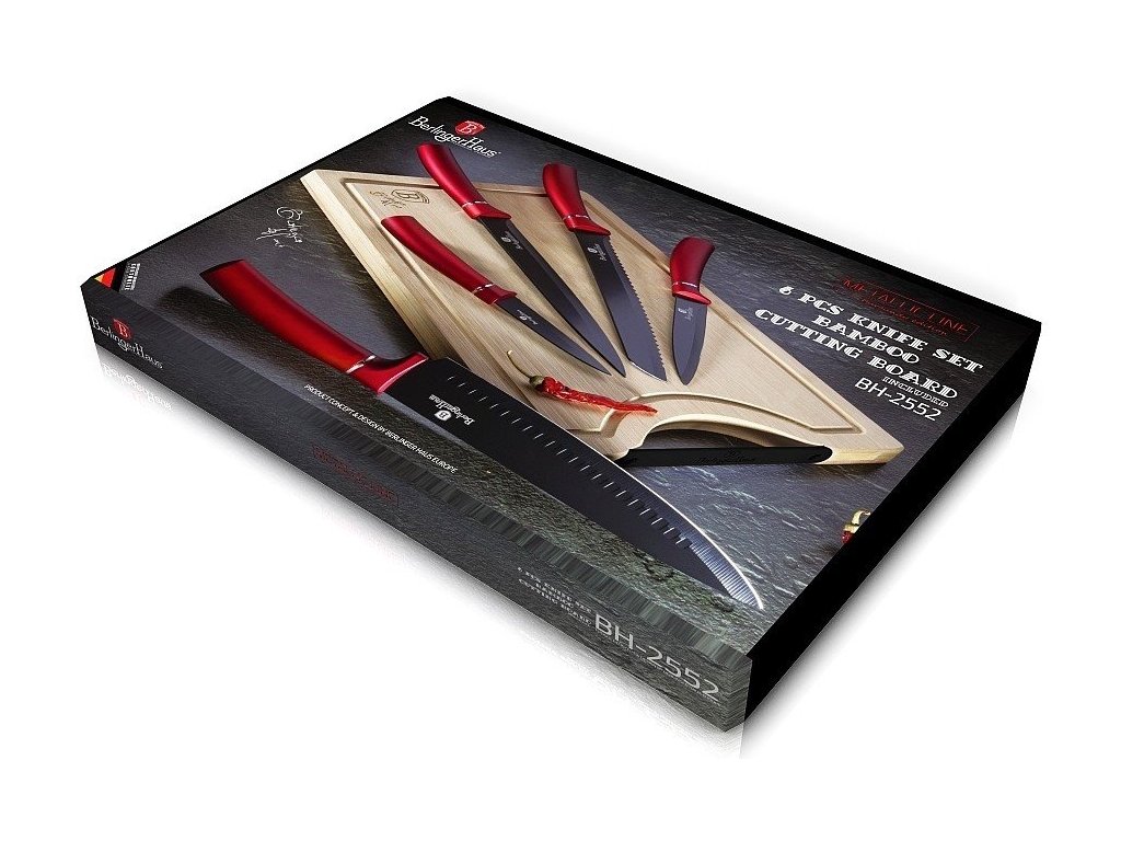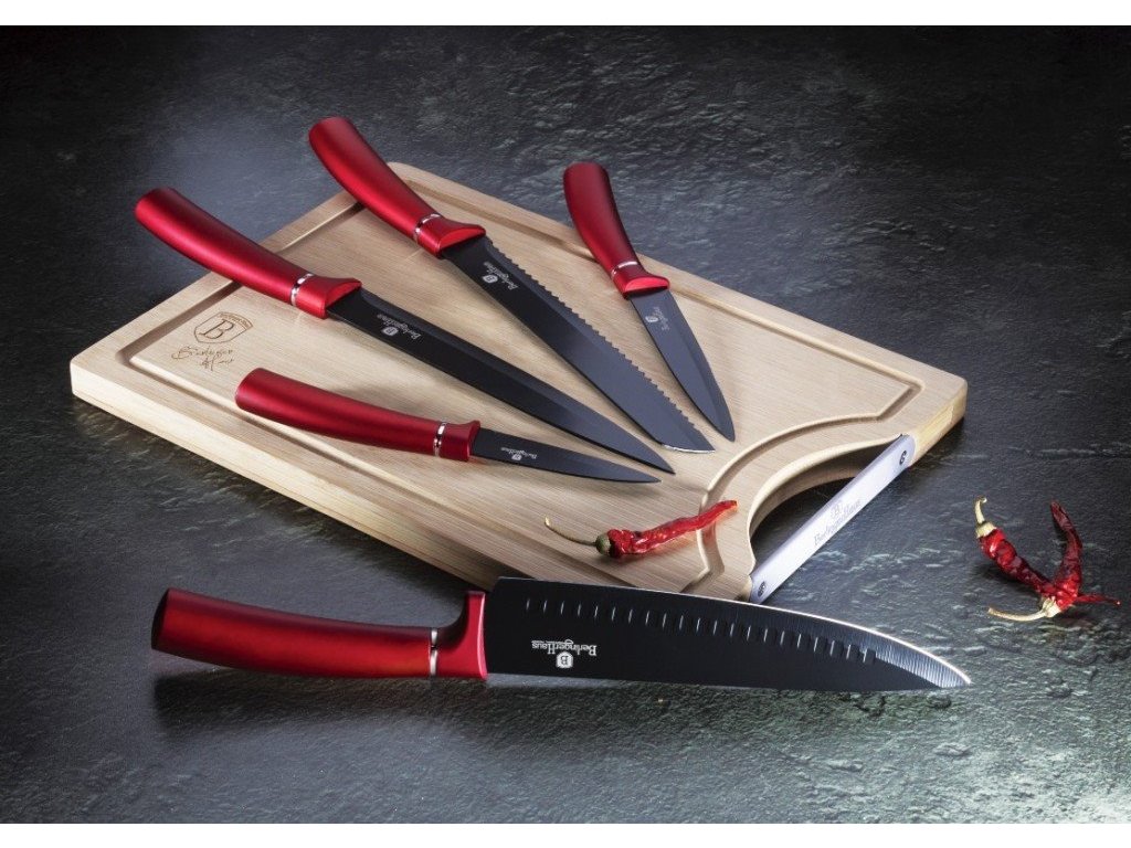 Sada nožů Berlingerhaus s nepřilnavým povrchem + prkénko 6 ks Burgundy Line BH-2552