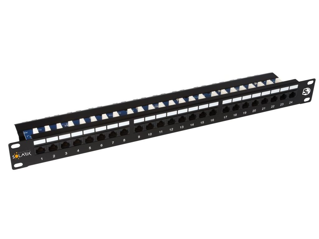 SOLARIX Patch panel UTP 24xRJ45 CAT5E s vyvazovací lištou 1U 19" nestíněný
