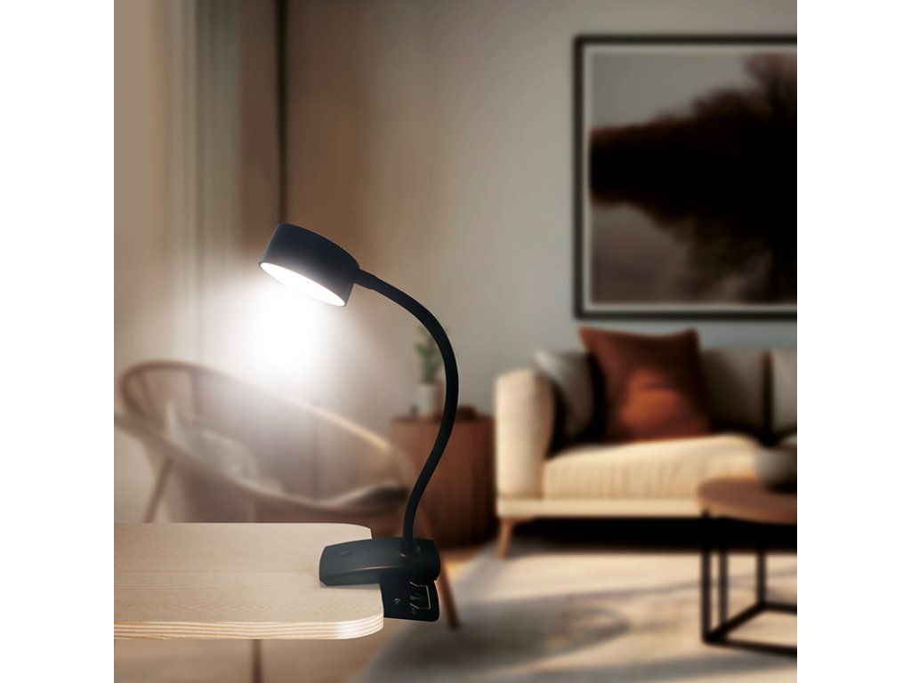 Solight LED stolní nabíjecí lampička, 2W, 210lm, 3CCT, černá, clip