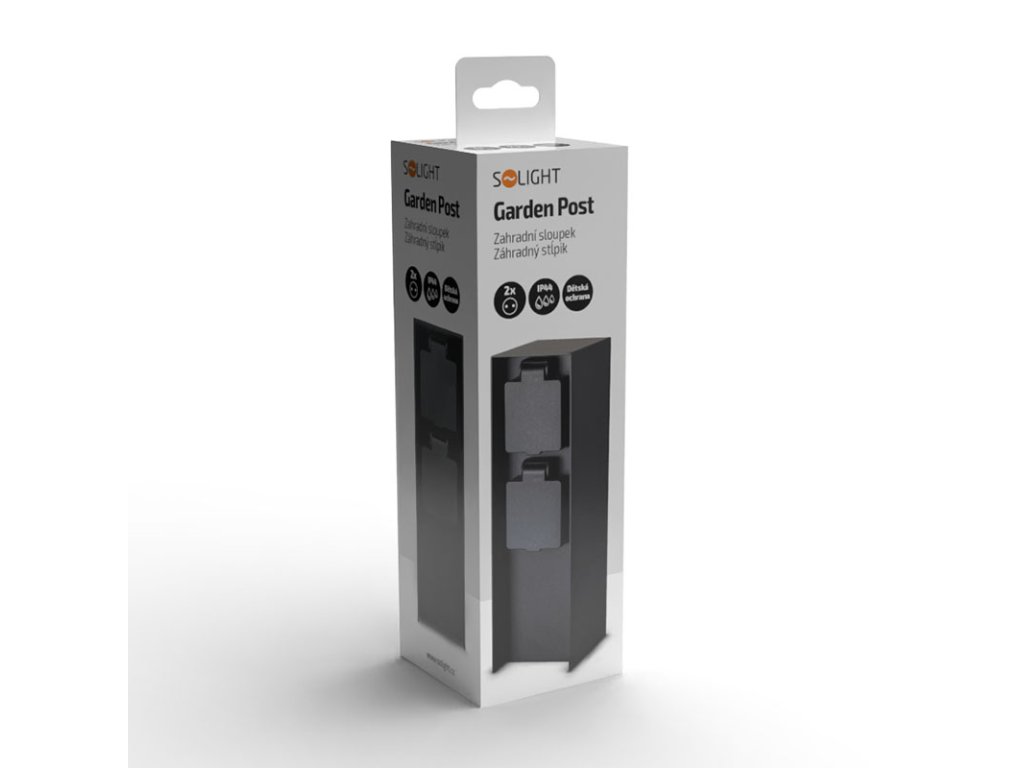 Solight zahradní sloupek IP44, hliník, 2 zásuvky, černý