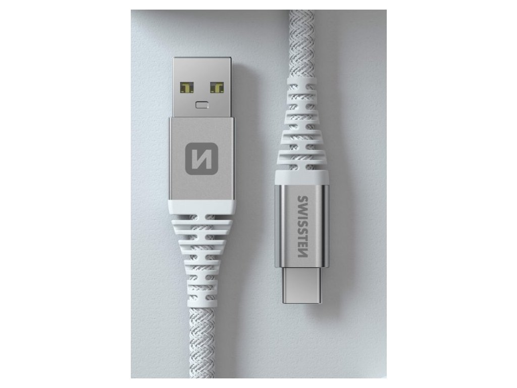 SWISSTEN DATOVÝ KABEL KEVLAR USB / USB-C 1,5 M BÍLÝ