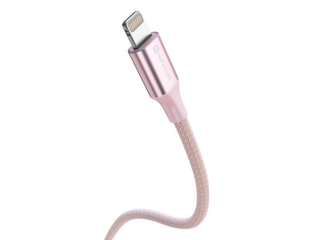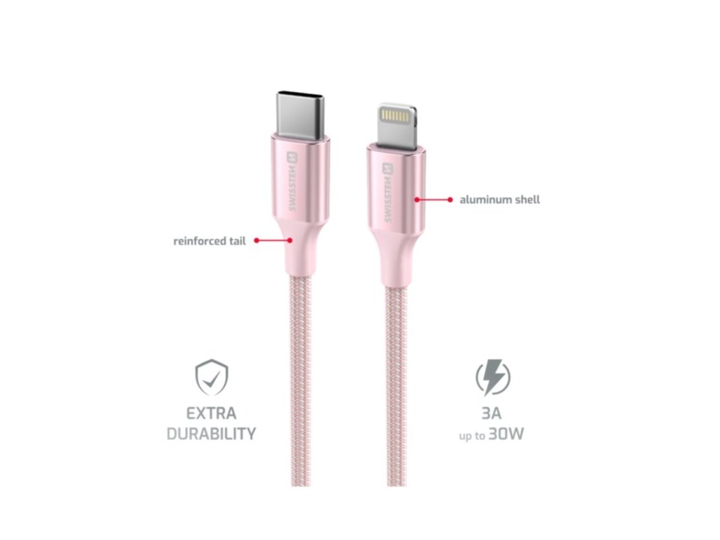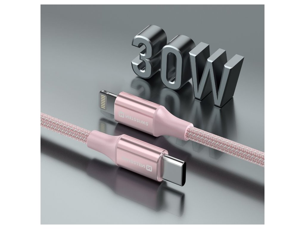 SWISSTEN DATOVÝ KABEL TEXTILE II USB-C / LIGHTNING 1,5 M RŮŽOVÝ
