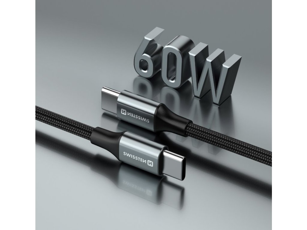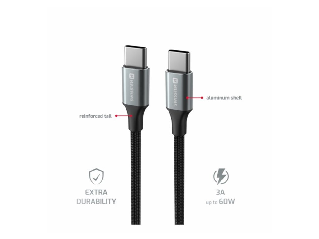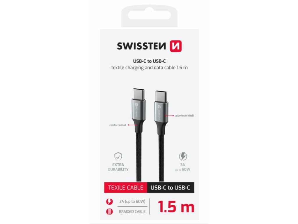 SWISSTEN DATOVÝ KABEL TEXTILE II USB-C / USB-C 1,5 M ČERNÝ