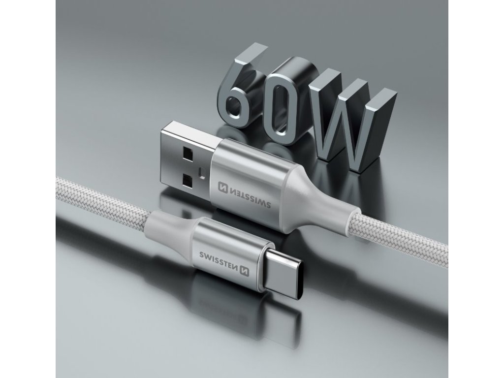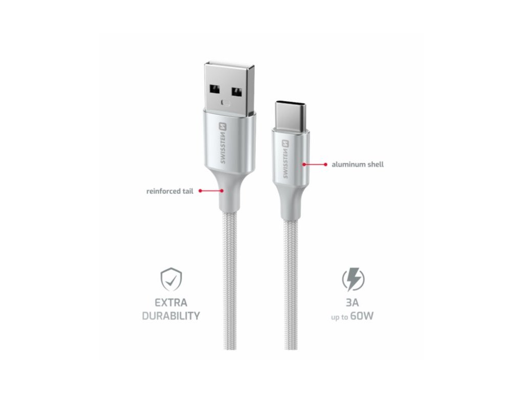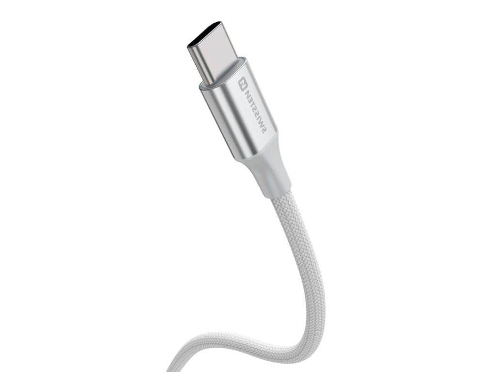 SWISSTEN DATOVÝ KABEL TEXTILE II USB / USB-C 1,5 M BÍLÝ