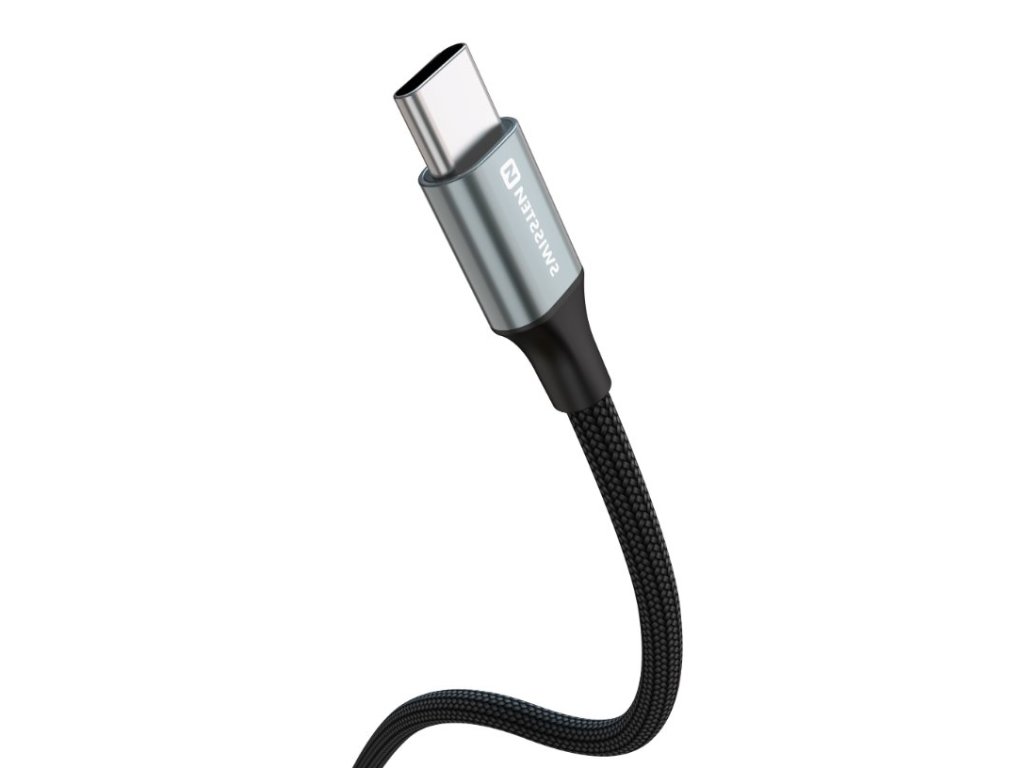 SWISSTEN DATOVÝ KABEL TEXTILE II USB / USB-C 1,5 M ČERNÝ