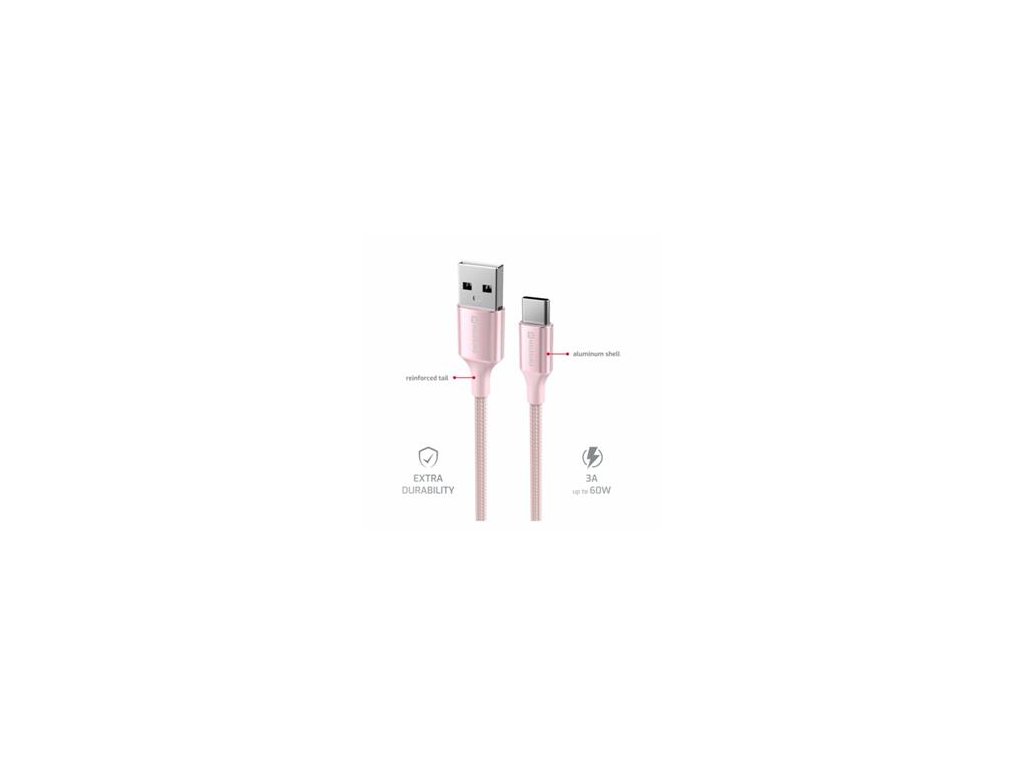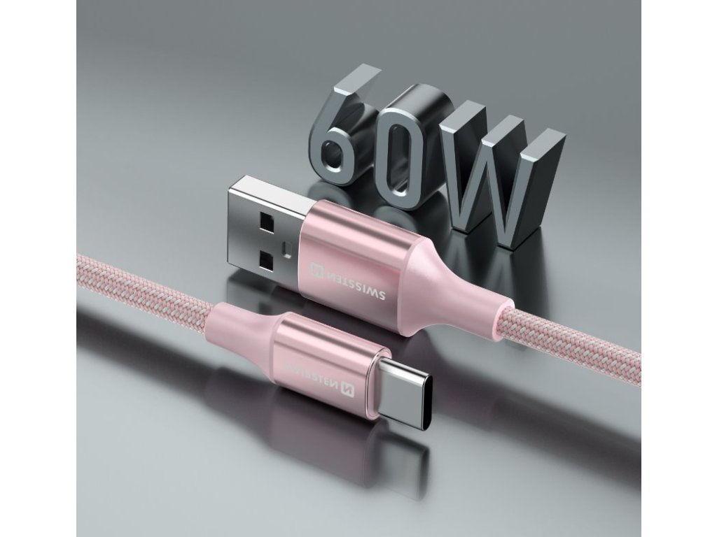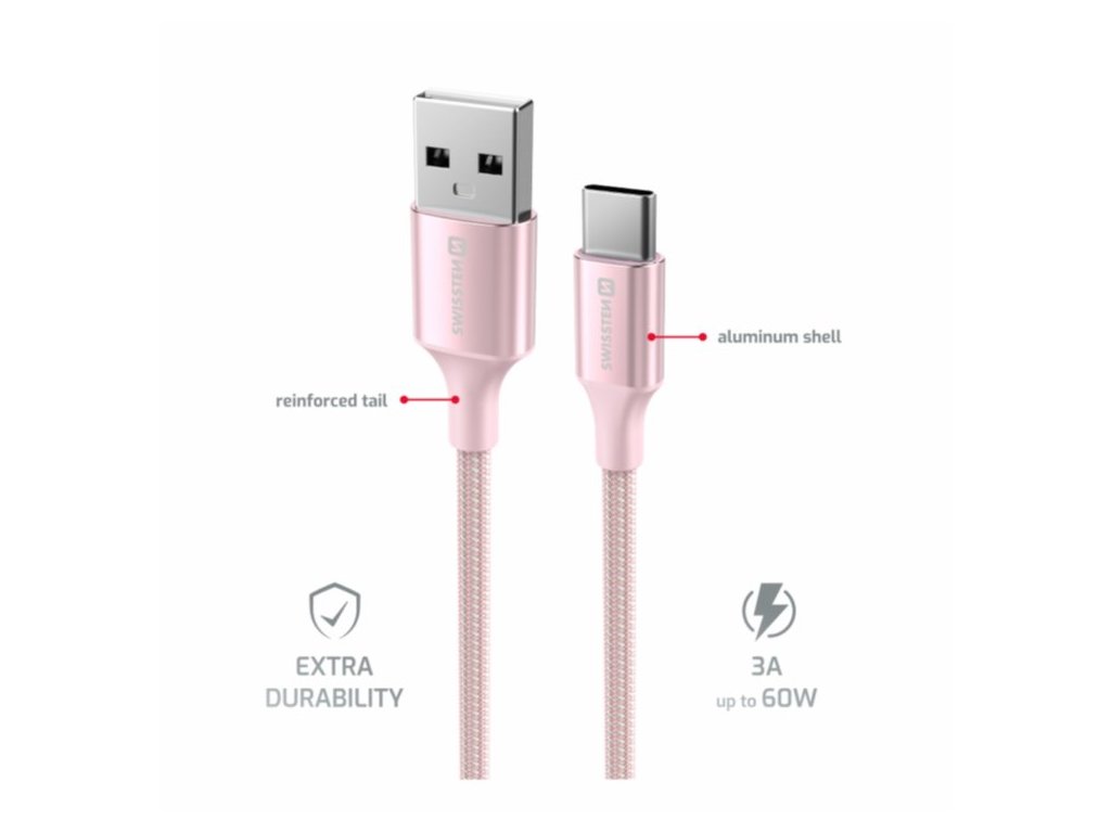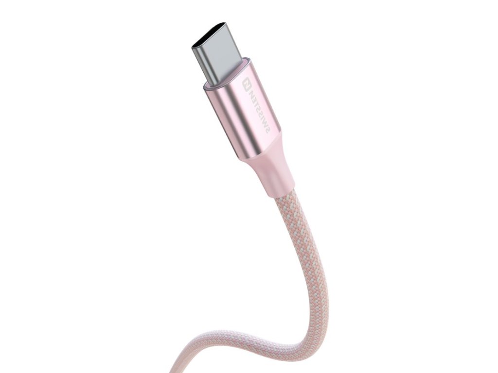 SWISSTEN DATOVÝ KABEL TEXTILE II USB / USB-C 1,5 M RŮŽOVÝ