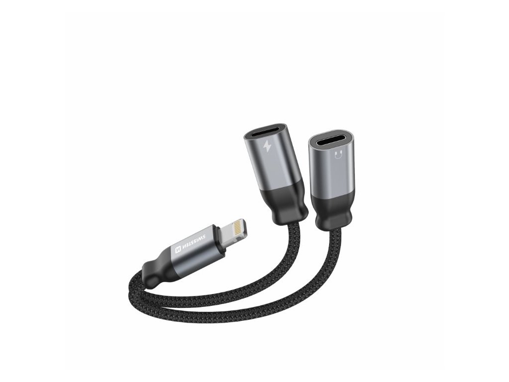 SWISSTEN NABÍJECÍ AUDIO ADAPTÉR TEXTILE LIGHTNING (samec) / 2x LIGHTNING (samice) 0,12 M ČERNÝ