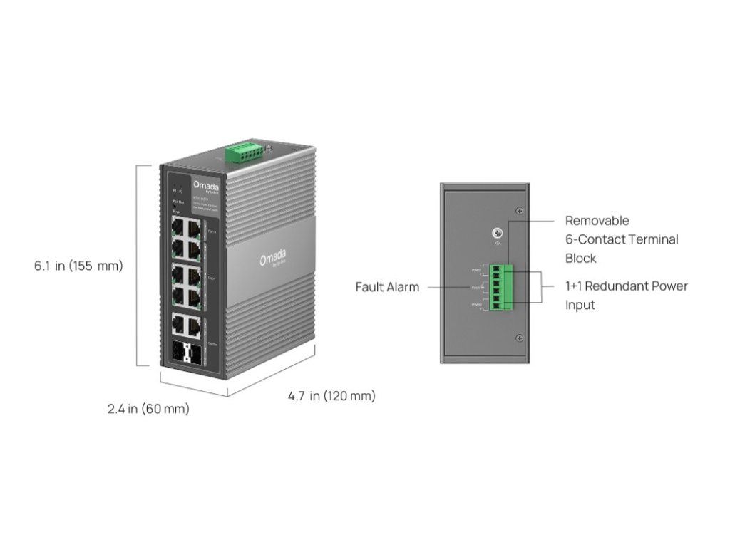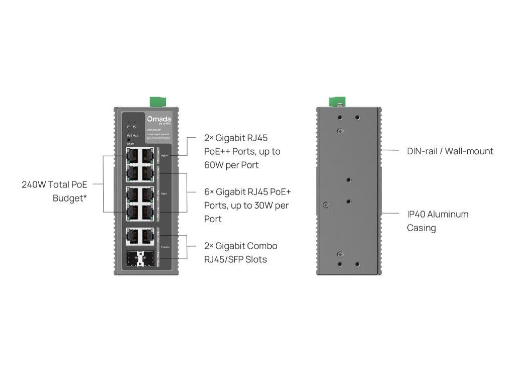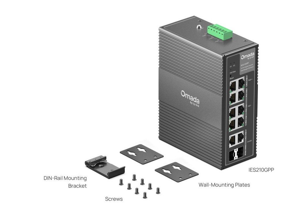 Switch TP-Link IES210GPP průmyslový, 2x SFP combo, 8x GLan s Poe+, 240W, DIN, Omáda SDN, poškozený obal