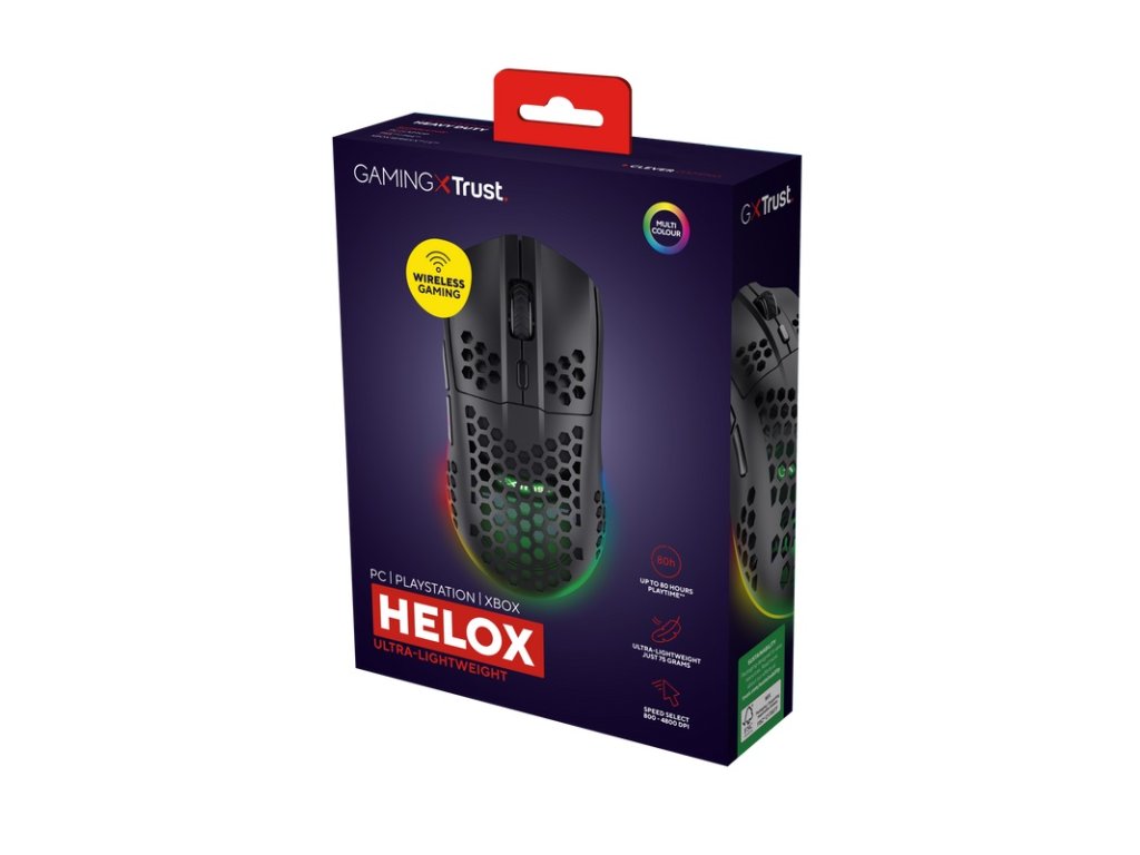 Trust Gaming GXT 929 Helox/Herní/Optická/Pro praváky/4 800 DPI/Bezdrátová USB/Černá