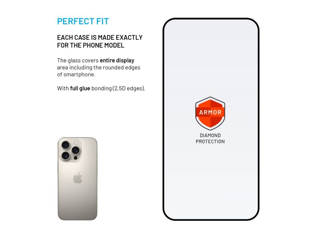 Tvrzené sklo FIXED Armor s Anti-dust aplikátorem a AR vrstvou pro Apple iPhone 16 Pro Max, černé
