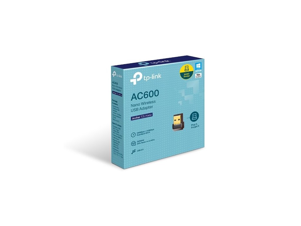 USB klient TP-Link Archer T2U Nano AC 600 adaptér, 2,4/5GHz, USB 2.0