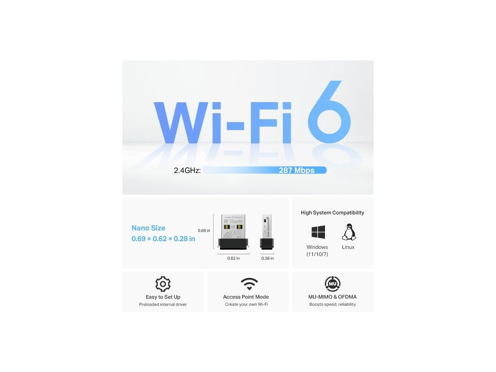 USB klient TP-Link Archer TX1U Nano AX300, 2,4/5GHz, USB 2.0