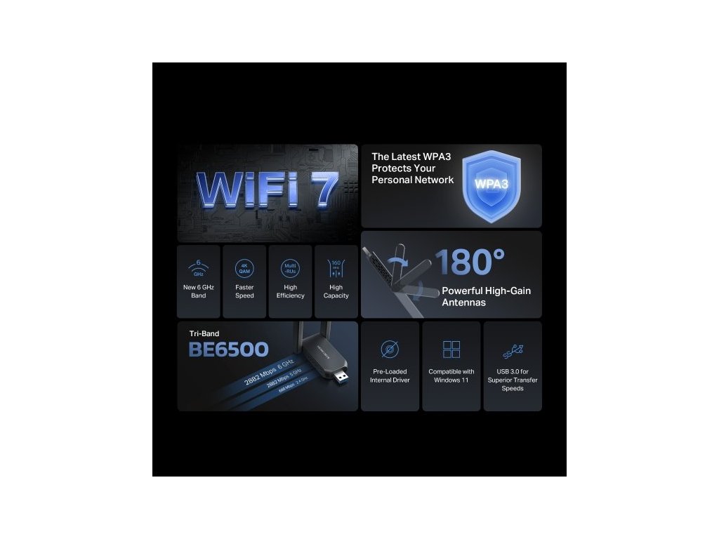 USB klient TP-Link Mercusys MA37BEH Wireless USB adapter BE6500, 2,4/5/6 GHz