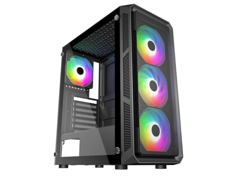 VeinX case HERMES MESH Mid Tower, ATX, 1xUSB 3.0, 2xUSB 2.0, 4x ARGB Fan, ARGB Controller, černá