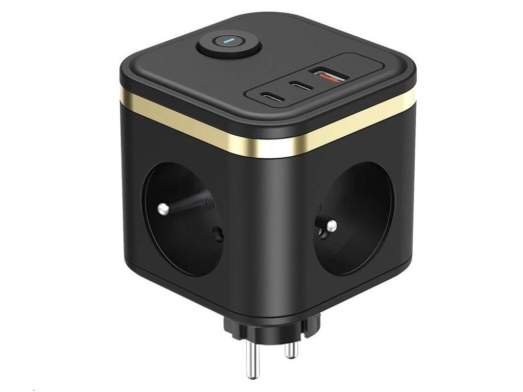 Viking síťový adaptér Y33, 3x 230 V, 1x USB-A, 2x USB-C, tlačítko ON/OFF, černá