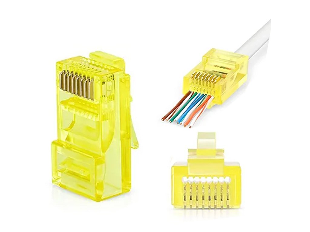 W-star Konektor UTP RJ45EZ Cat5e100ks pozlacený, žlutá, pass through RJ45EZ5YS