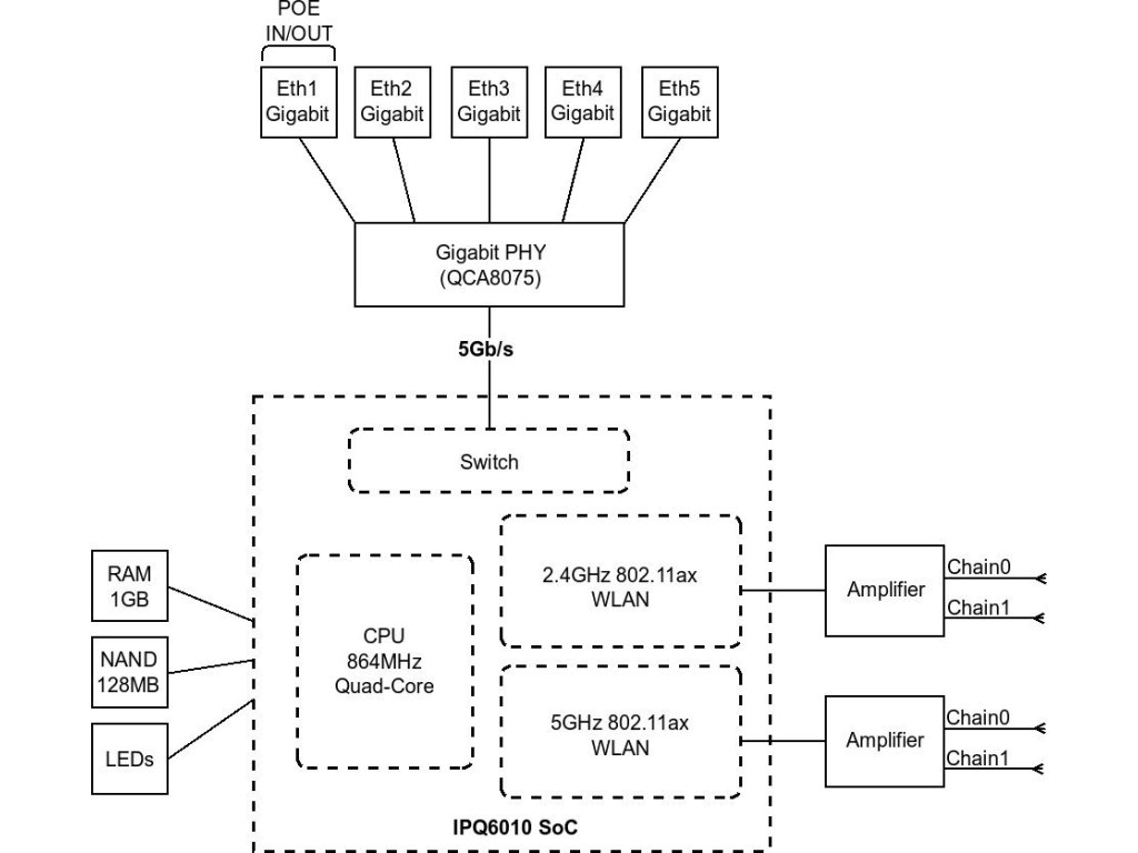 WiFi router Mikrotik hAP ax2 WiFi 6 AP, 4 x GLAN, 1x GWAN s PoE In/Out, 574Mbps 2,4/ 1200Mbps 5GHz,