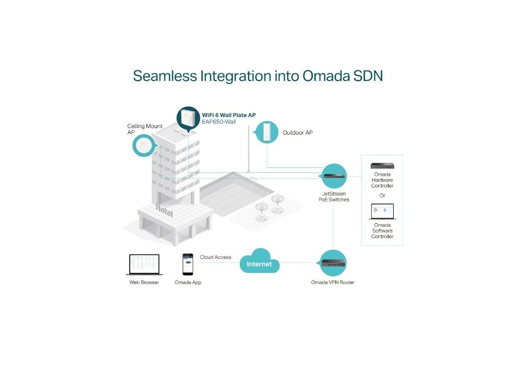WiFi router TP-Link EAP650-wall AP, 1x GLAN, 2,4 a 5 GHz, AX3000, Omáda SDN