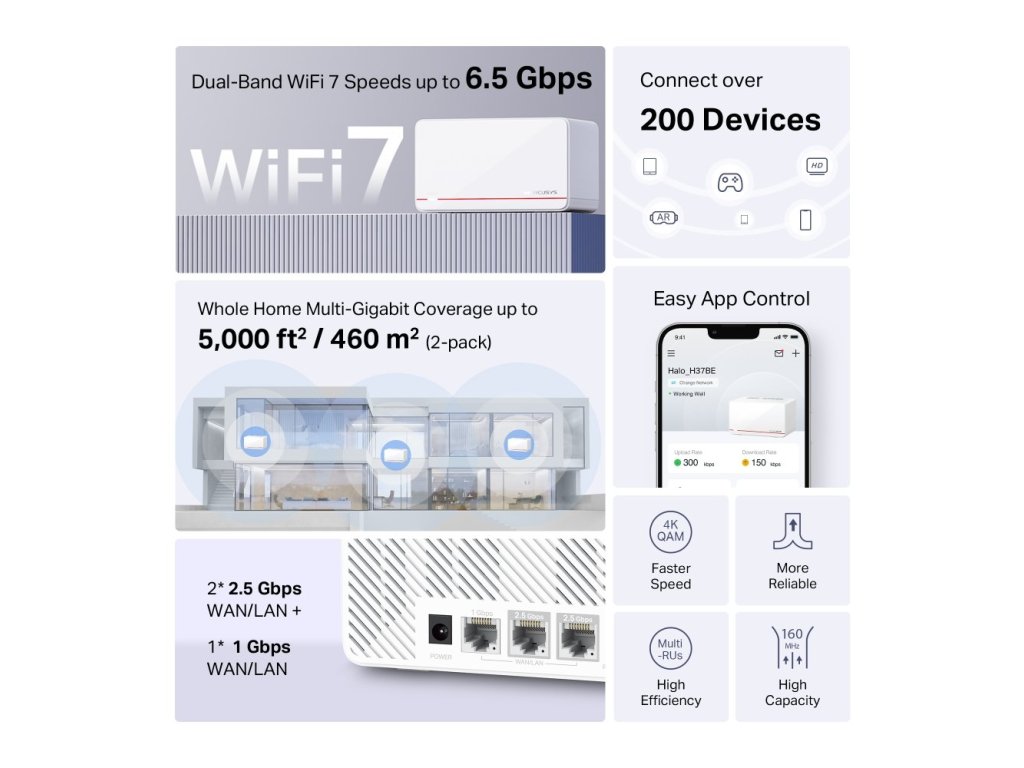 WiFi router TP-Link Mercusys Halo H37BE(3-pack) WiFi 7, BE6500, 2x 2.5GLAN, 1x GLAN, 2,4/5 GHz