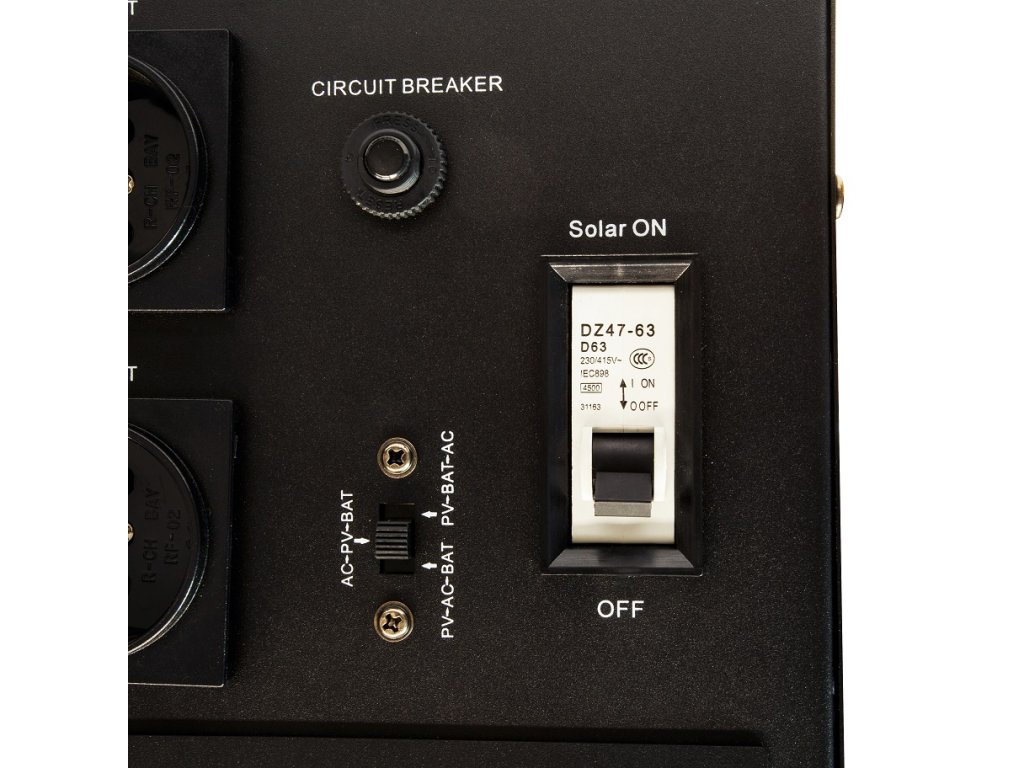 Při stabilní dodávce elektřiny jsou napájeny všechny připojené spotřebiče přímo z elektrické sítě a v případě výpadku napájení nebo při dosažení parametrů mimo normální rozmezí automaticky přepne záložní zdroj na bateriový provoz. Zároveň je možné dobíjet akumulátor uvnitř z FV panelů pomocí vestavěného solárního regulátoru typu MPPT, díky čemuž můžete pohodlně čerpat sluneční energii a být více energeticky soběstační.
