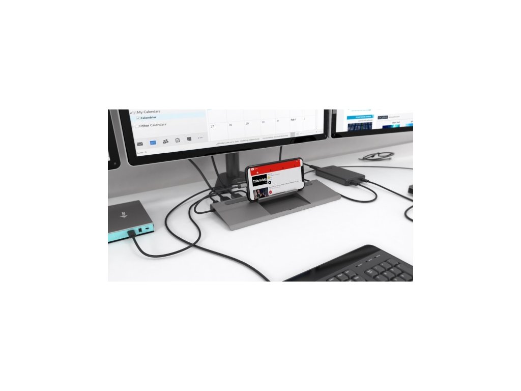 Popis Univerzální dokovací stanice, kterou lze použít prakticky s jakýmkoliv notebookem, neboť je možné ji připojit do libovolného USB portu (USB 3.0, USB-D, Thunderbolt 3, nebo dokonce i do staršího USB 2.0). Stanice podporuje až 2x externí monitor, který připojíte díky HDMI portům. 6x USB port, spolehlivé a rychlé připojení k internetu díky integrovanému LAN portu a nechybí ani podpora audio vstupu a výstupu. Dokovací stanici lze instalovat ve svislé poloze (požaduje méně místa na pracovním stole), nebo i horizontálně – v takovém případě může sloužit i jako pohodlný podstavec pro váš notebook. Připojte až dva externí monitory K dispozici jsou dva porty HDMI 2x USB 3.0 (z toho jeden s podporou rychlého nabíjení), pro rychlý přenos dat 4x USB 2.0 vám umožní snadné připojení vašich USB zařízení a periferií. Gigabitový Ethernet RJ-45 poskytuje spolehlivé, robustní a vysokorychlostní internetové připojení s podporou 10/100/1000 Mbps rychlostí Samostatný audio výstup a audio vstup (mikrofon) Podporuje Windows 10, macOS X, Android, ChromeOS a Linux Specifikace 1x USB 3.0 port pro připojení k zařízení Technologie dokovací stanice: DisplayLink Video porty: 2x HDMI Rozlišení: 1 monitor – 1x HDMI › až 2560×1440/50Hz 2 monitory – 2x HDMI › až FHD/60Hz 1x USB 3.0 port 1x USB 3.0 port s podporou rychlého nabíjení (BC 1.2) 4x USB 2.0 port 1x Ethernet GLAN RJ-45 port (DisplayLink DL-3900) 1x 3,5mm Audio výstup, 1x 3,5mm Mikrofónní vstup 1x vstup pro napájení (DC 5V/4A) Kabel USB-B na USB-A/USB-C (100cm) OS: Windows XP SP3 / Vista / 7 / 8 / 8.1 / 10, macOS X, Linux Ubuntu 14.04, 16.04, 17.04, 17.10, 18.04, 19.04, Android 5 nebo novější, Chrome OS R51 nebo novější Jednoduchá instalace ovladačů (Windows, MacOS, Ubuntu, Android (external link)) Rozměry produktu: 181 x 71 x 31 mm Hmotnost produktu: 218g Hardwarové požadavky: Zařízení s volným USB-A nebo USB-C portem Operační systém: Windows XP SP3 / Vista / 7 / 8 / 8.1 / 10, macOS X, Linux Ubuntu 14.04, 16.04, 17.04, 17.10 18.04, 19.04, Android 5 nebo novější, Chrome OS R51 nebo novější Dokovací stanice se připojuje přes USB 3.0 rozhraní a tudíž nepodporuje nabíjení notebooků a tabletů. Obsah balení Produkt Stojan Napájecí adaptér (DC kabel 175cm) Propojovací kabel (100cm) s porty USB-A a USB-C ManuálKód produktu: SWS537751