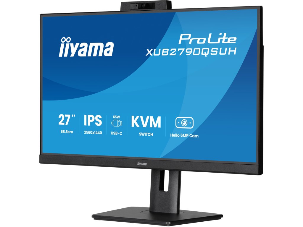 27" IPS QHD monitor with a built-in Windows Hello camera and microphone, USB-C, KVM-Switch and height adjustable stand