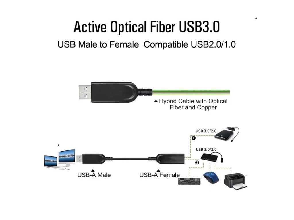 Pomocí prodlužovacího optického kabelu PremiumCord USB3.2 + 2.0 spojíte 2 zařízení přes USB. Standardní USB kabely nabízejí délku maximálně 5 metrů, kterou si díky PremiumCord můžete prodloužit o 20 m. Dosahuje skutečné přenosové rychlosti USB 3.2 a zároveň je zpětně kompatibilní s USB 2.0. Můžete za něj zapojit i USB hub, čímž si připojíte několik USB zařízení k sobě.
