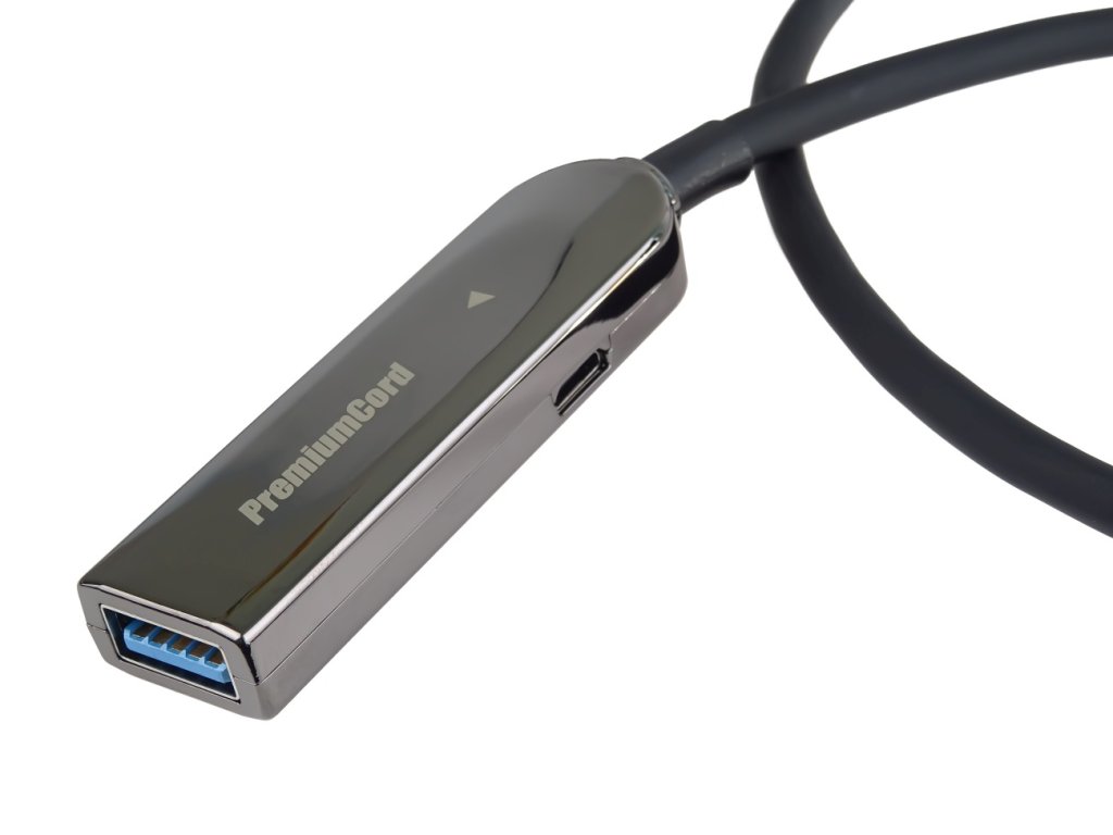 Kabel PremiumCord USB 3.2 A-A, M/F 20m, prodlužovací, optický AOC, černý